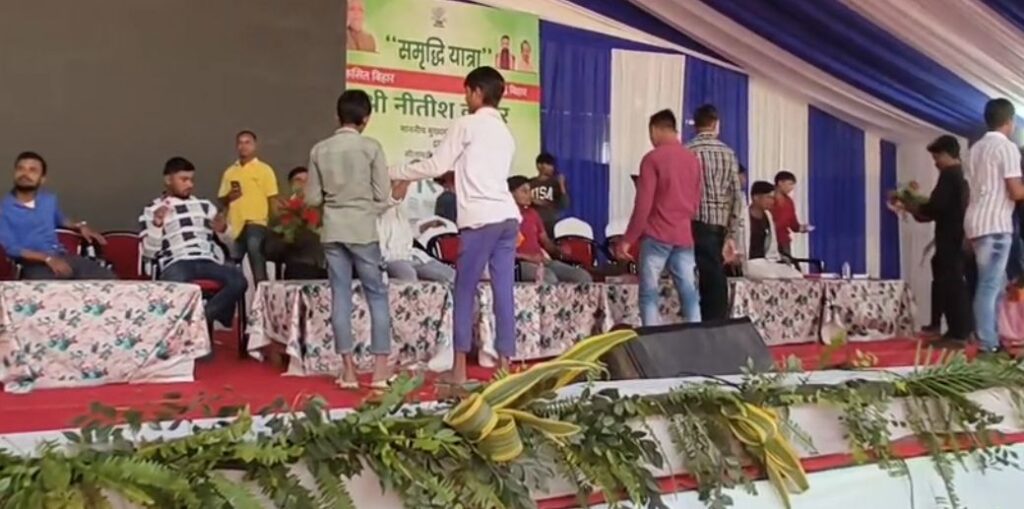 बेलसंड में समृद्धि यात्रा के तहत सीएम नीतीश कुमार का दौरा, जनसभा के बाद मंच पर मची अफरा-तफरी