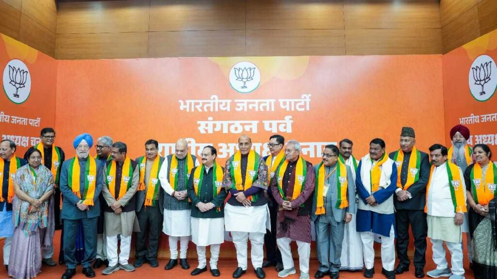 नई दिल्ली स्थित बीजेपी मुख्यालय में इस मौके पर वरिष्ठ नेताओं का जमावड़ा देखने को मिला। प्रधानमंत्री नरेंद्र मोदी, गृह मंत्री अमित शाह, रक्षा मंत्री राजनाथ सिंह, पूर्व अध्यक्ष जेपी नड्डा, नितिन गडकरी और शिवराज सिंह चौहान मंच पर मौजूद रहे।