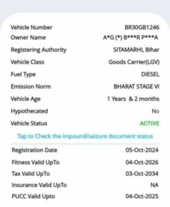 सीतामढ़ी। शहर में दिन-रात ट्रैफिक नियमों का उल्लंघन करने वालों पर सख्ती दिखाने वाली यातायात पुलिस खुद सवालों के घेरे में आ गई है। जानकारी के अनुसार सीतामढ़ी यातायात थाना के थानाध्यक्ष की सरकारी गाड़ी (BR30GB1246) का प्रदूषण नियंत्रण प्रमाणपत्र (PUC) एक्सपायर हो चुका है, लेकिन इसके बावजूद वाहन सड़कों पर धड़ल्ले से दौड़ रहा है।
