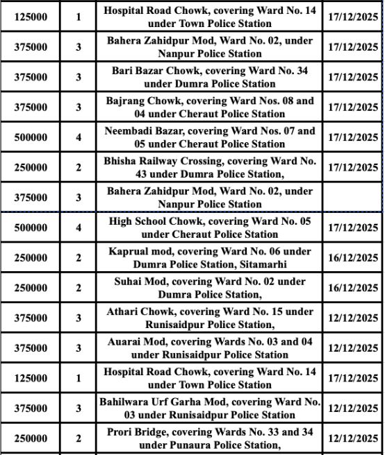सीतामढ़ी के सांसद श्री देवेश चंद ठाकुर द्वारा जिले में CCTV कैमरे लगाए जाने के नाम पर करोड़ों रुपये खर्च किए जाने का मामला अब सवालों के घेरे में है। आधिकारिक दावों के अनुसार 2 करोड़ 32 लाख 46 हज़ार 657 रुपये की लागत से 81 अलग-अलग स्थानों पर कुल 186 CCTV कैमरे लगाए गए हैं। इस हिसाब से एक कैमरे की औसत कीमत लगभग 1 लाख 25 हज़ार रुपये बैठती है, जो अपने आप में चौंकाने वाली है।
